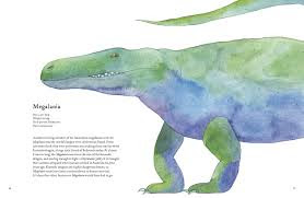 The author uses almost all of the space on the pages to bring the creatures alive- and the size is a nod to the larger than life theme of the book. The text is just long enough to engage readers of many ages, and yet packed full of fascinating information about each creature. He provides information such as size and weight of each creature, but also compares each to the current animal that it is in close relation to. This helps the reader make important connections which is what we as teachers are always trying to help the children with.